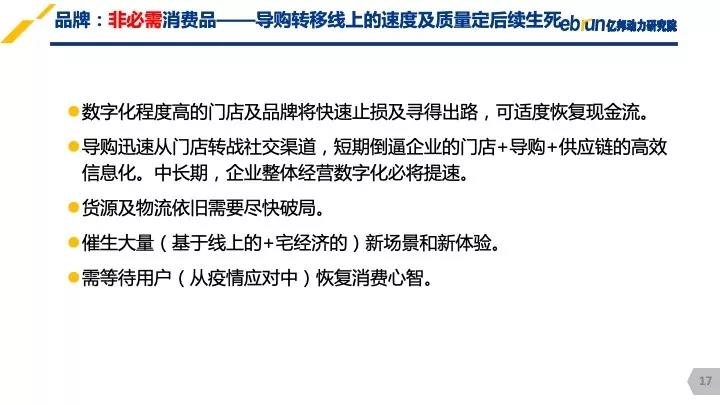 针对疫情期间网络零售市场受到的具体影响及企业的应对措施,亿邦动力研究院出品了一份快报。该报告既涵盖了多个行业的详情及企业案例,也提供了网络零售市场疫情后续趋势的预判。